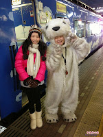 在札幌月台上看著旭山動物園号的列車停站,列車隨即跳下一位穿上了北極熊(心中最想遇上的是ペンギン)打扮的可愛美少女!(注:一共有3類種,分別是:レッサーパンダ(紅熊貓)、ホッキョクグマ(北極熊)、ペンギン(企鵝)。)不少遊客就如本人馬上衝上去圍觀與及拍照!也有不少小孩子圍著這美女走動著。讓你在等待期間也不缺乏玩樂,不會寂寞。