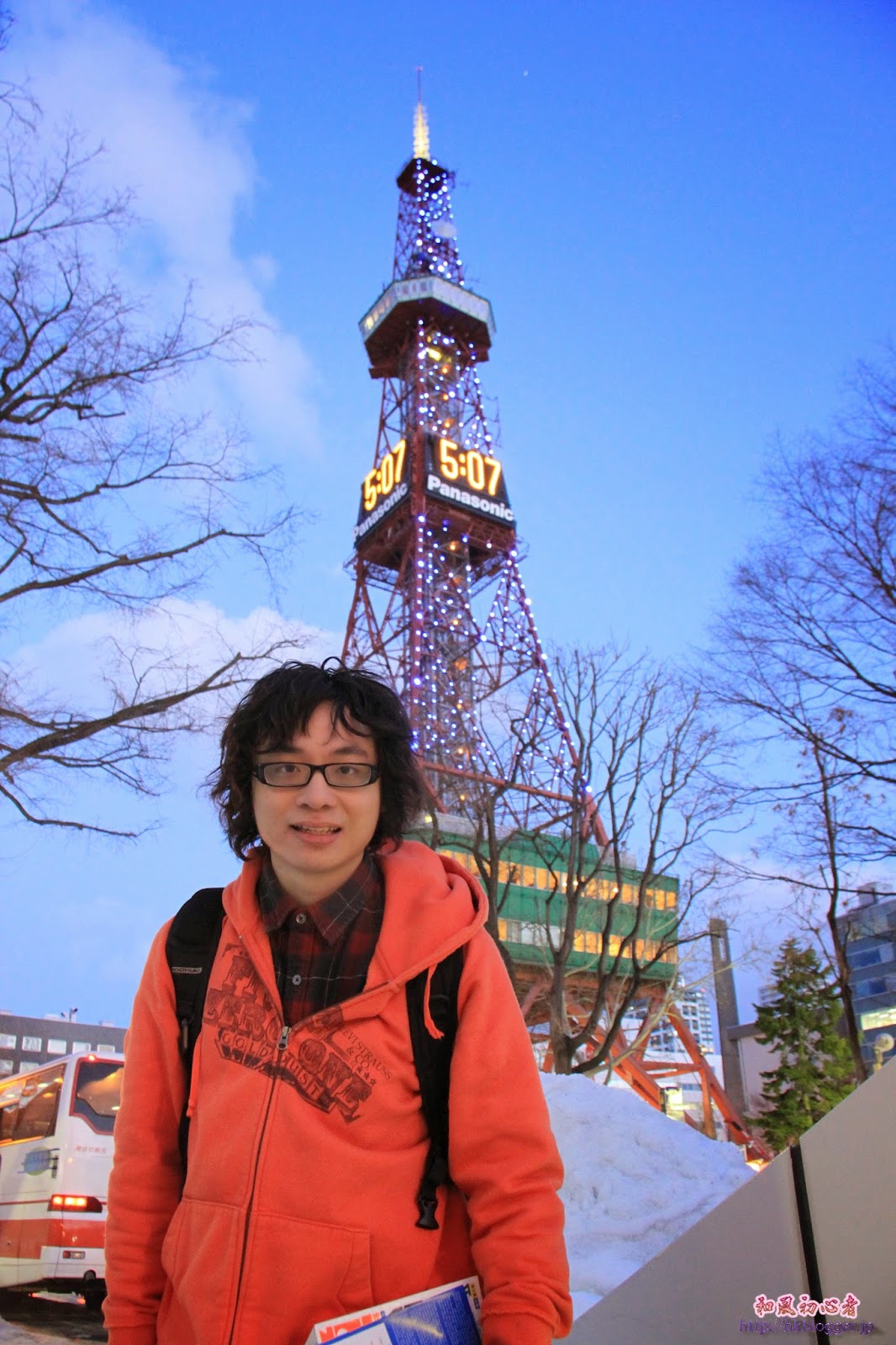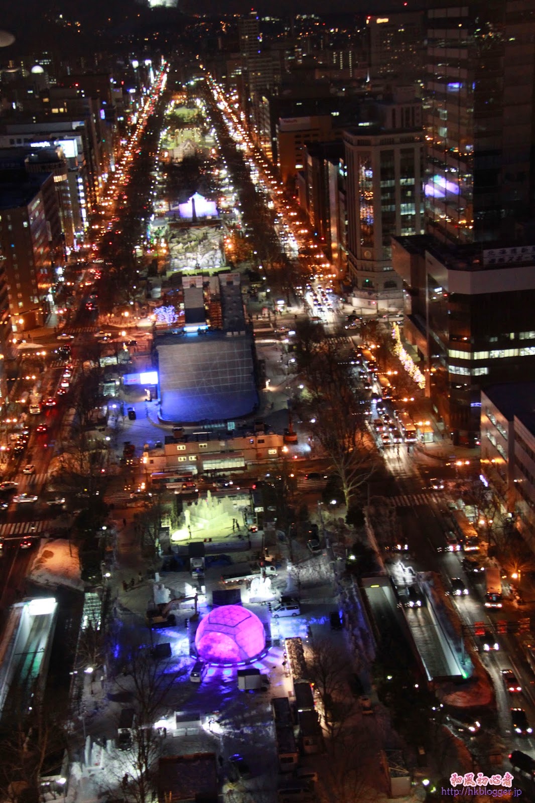 回到時計台的大門口拍下了一照,職員盡力解釋著歷史,然而也是一句也聽不明白,但場內也有互動的地方。慢慢走到テレビ塔,塔旁的一個表演場地,不知在進行什麼活動。在塔上欣賞了只屬於札幌的夜景,看著正在建造中的札幌雪祭場地,心中期望著數日後可親身感受只屬於札幌才有的札幌雪祭。