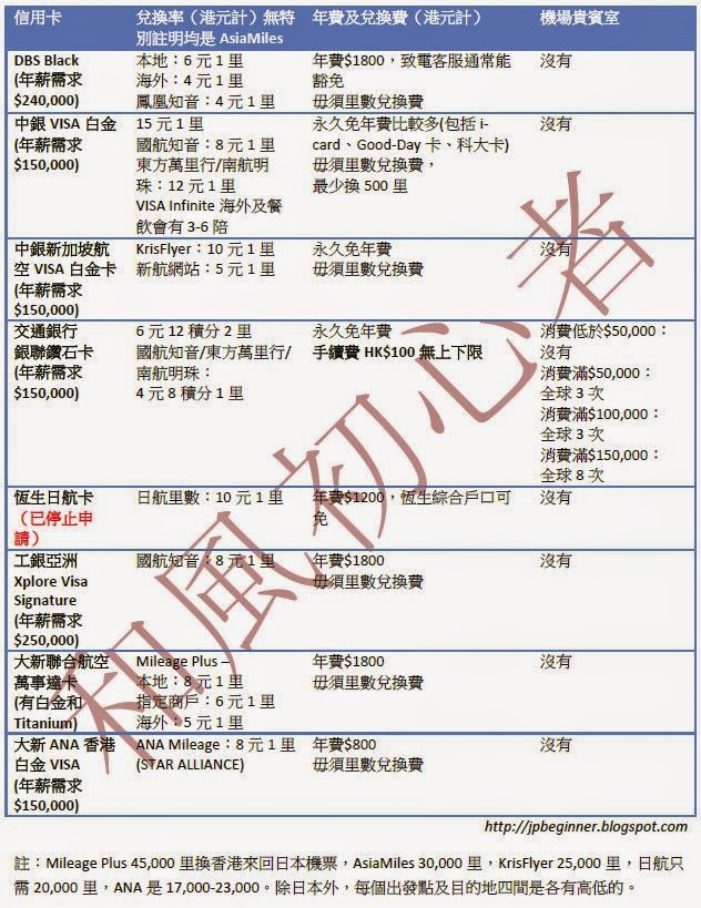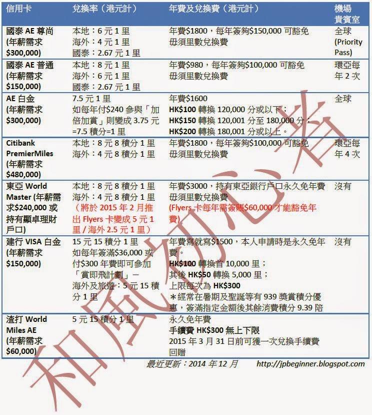 第一,如果你的信用卡是專設計給換里數的,里數兌換率相對會較低,而且可能不需要兌換手續費(請參看下表)