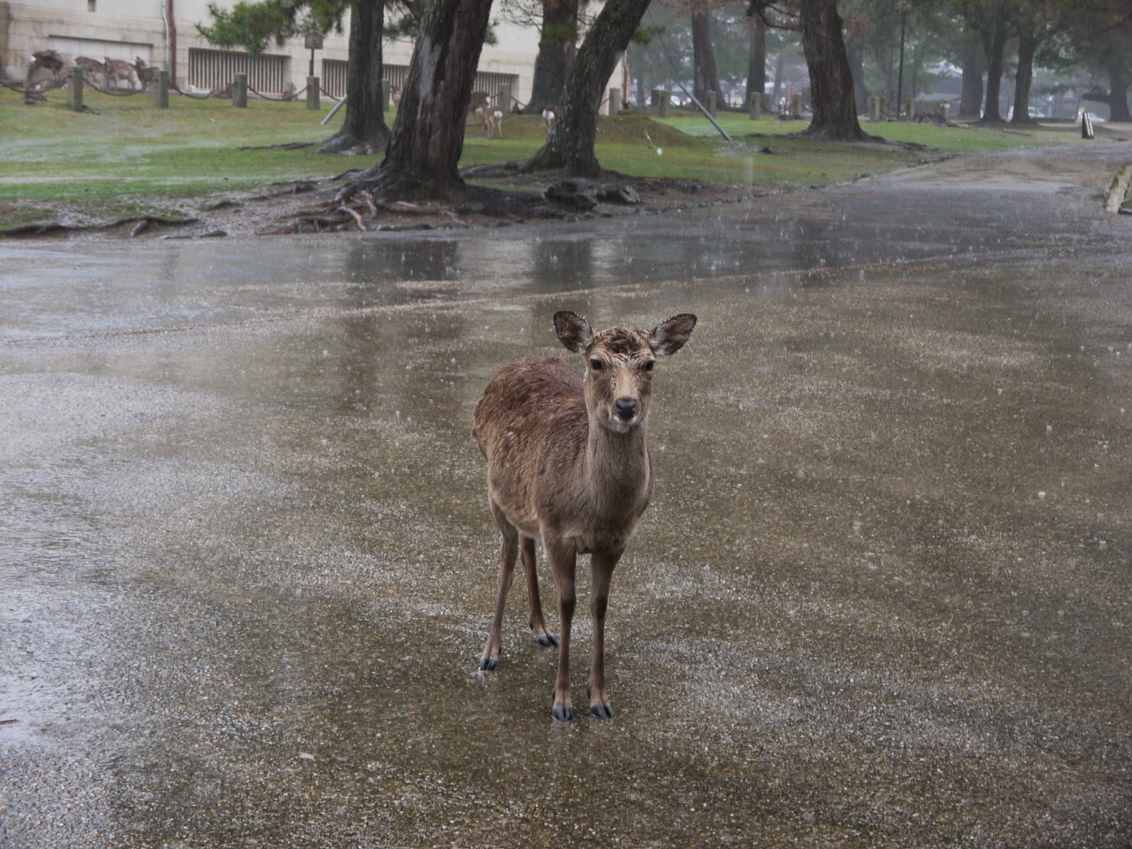 在大阪的最後一天,前往奈良親親小鹿鹿!隨著列車徐徐地離開難波,陽光普照,一心在感謝上天的眷顧。誰也不知道,走著走著,天空變成了灰色,慢慢地下起了毛毛細雨。當列車到達奈良時,雨愈下愈大,嚴重阻礙前進的路線。只能留守在奈良大街逛了又逛。隨著時間的過去,雨卻沒有想像中那樣停下。還是決定冒雨前進,果然沒有方向感的人就是沒有。迷路了(誤...............T3T)冒著雨不知走了多長的時間,也不知道求救了多少的人。